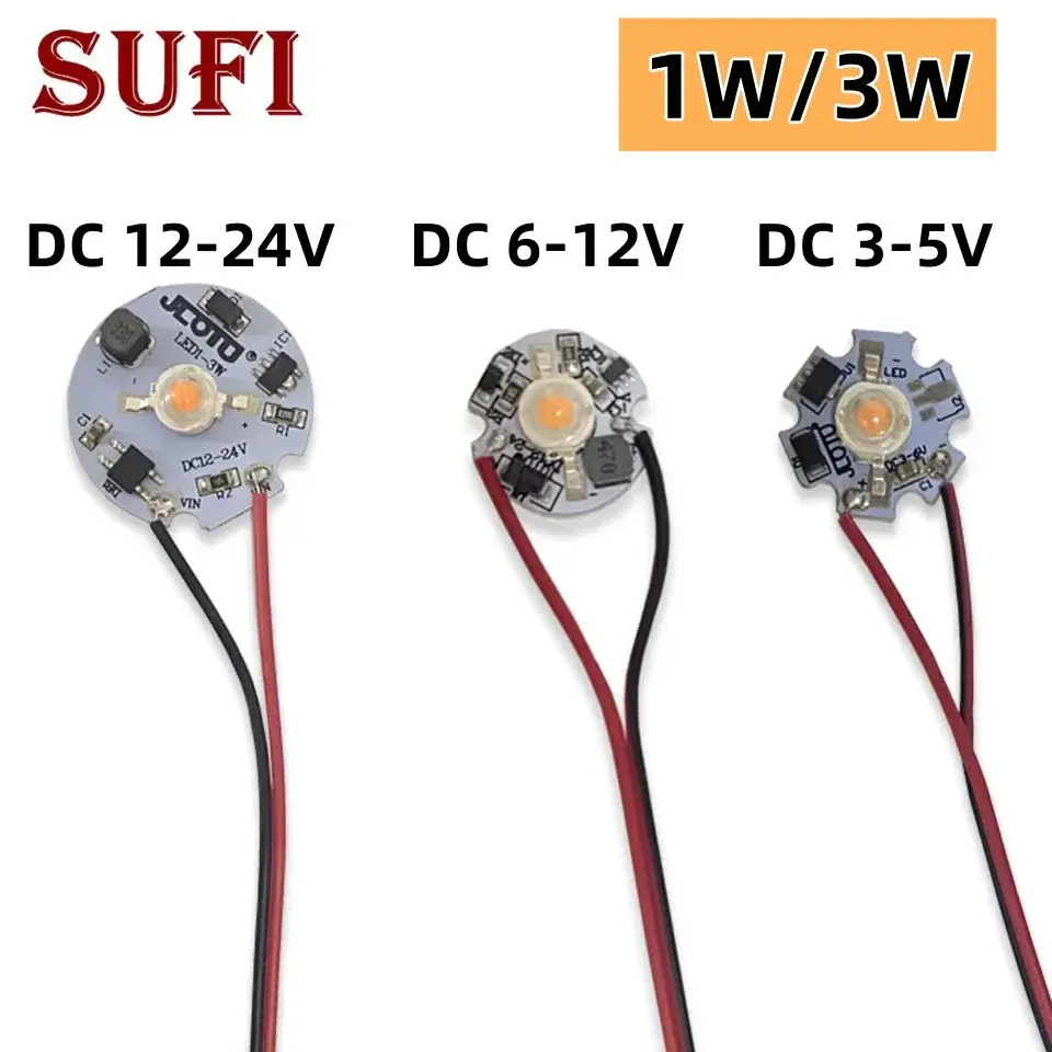 1W 3W LED Bead Light Plate DC3-5V/6-12V/12-24V Drive Free Light Chip Battery